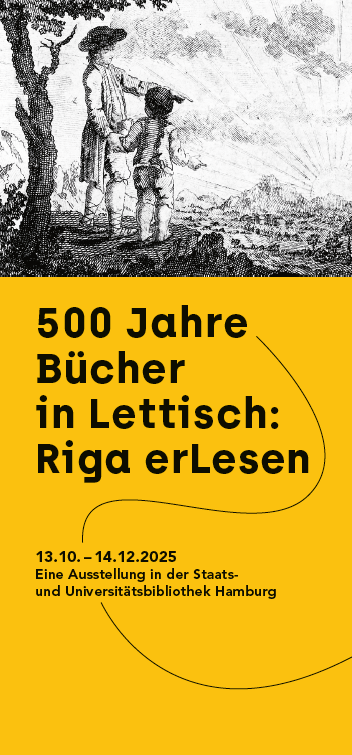 Anlässlich einer dreijährigen Partnerschaft zwischen lettischen und deutschen Bibliotheken präsentiert die SUB Hamburg eine Wanderausstellung zur lettischen Literaturgeschichte und ihren über Jahrhunderte gewachsenen Kulturbeziehungen zu Deutschland. Von den Anfängen handschriftlicher Überlieferungen über gedruckte Bücher bis hin zur modernen lettischen Literatur wird Riga als Zentrum von Verlagen, Bibliotheken und Wissen sichtbar.